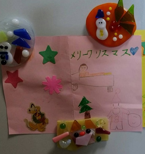 講座の時に役員さんがご用意してくださった材料で作ったクリスマスカードです。