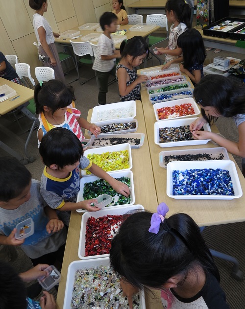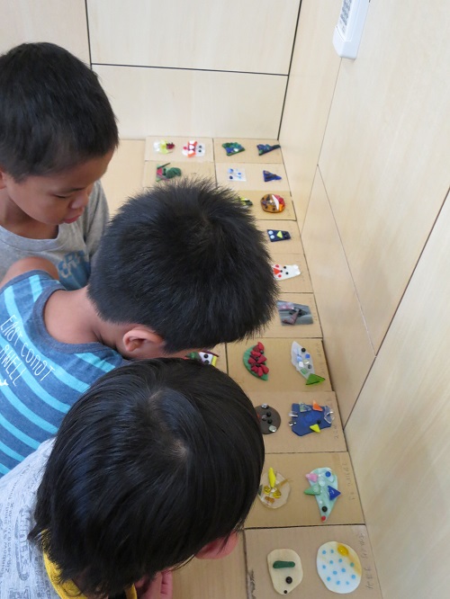 どんな作品が出来るのかワクワクです。 楽しそうにガラス選び。 お友達がどんな作品を作ったのか観賞会です。